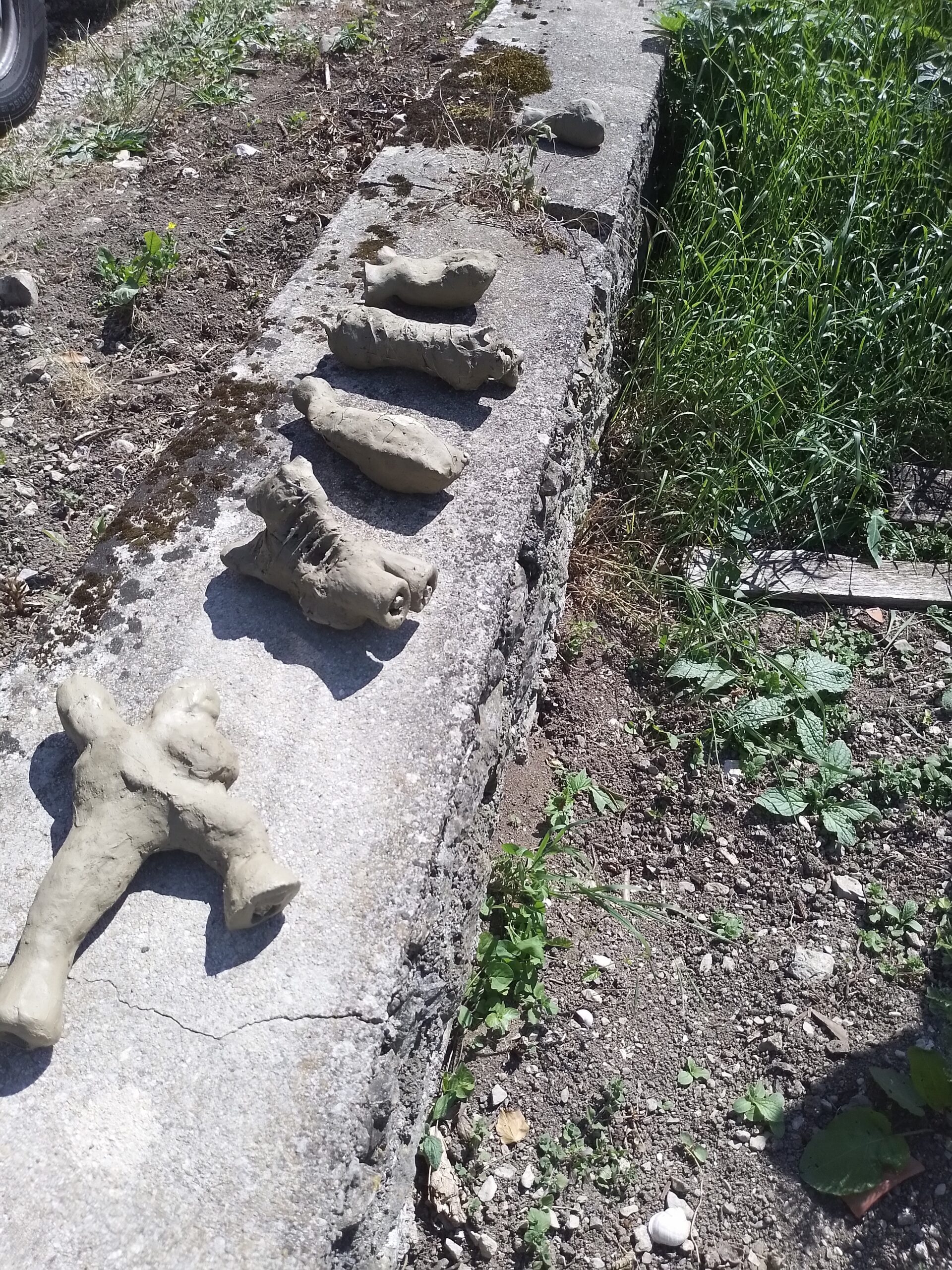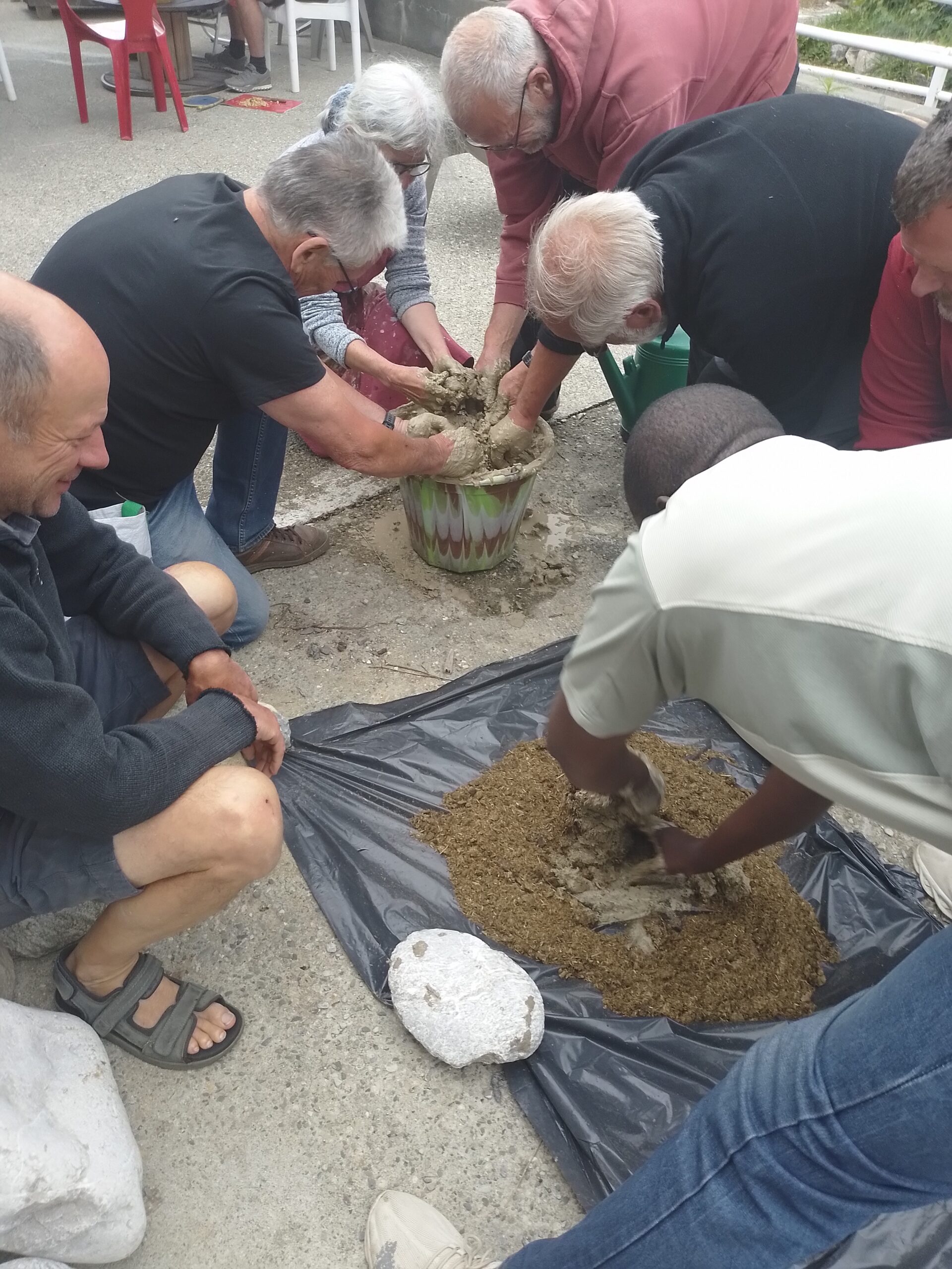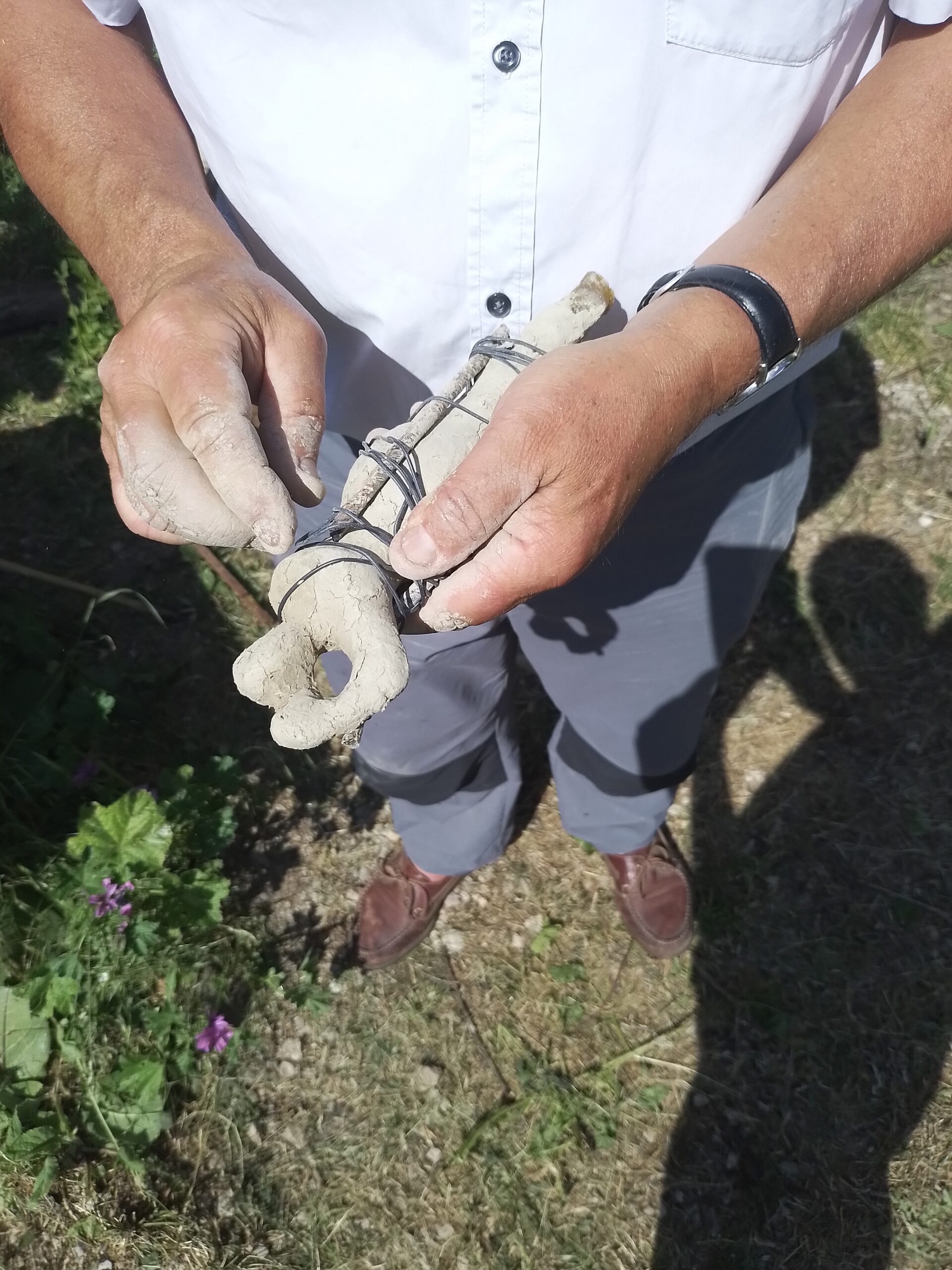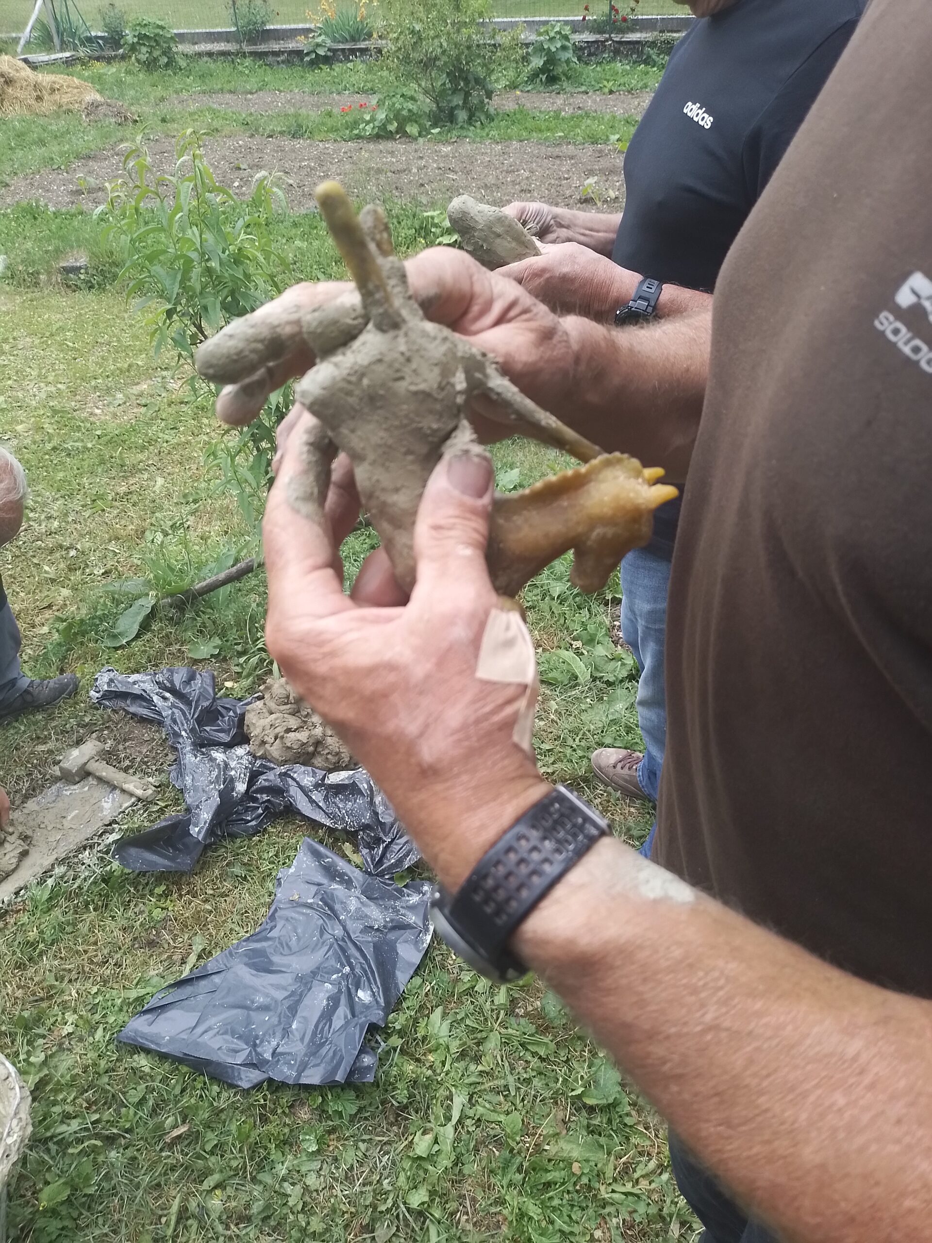 – Réalisation du moule en argile mélangé avec du crottin de cheval.