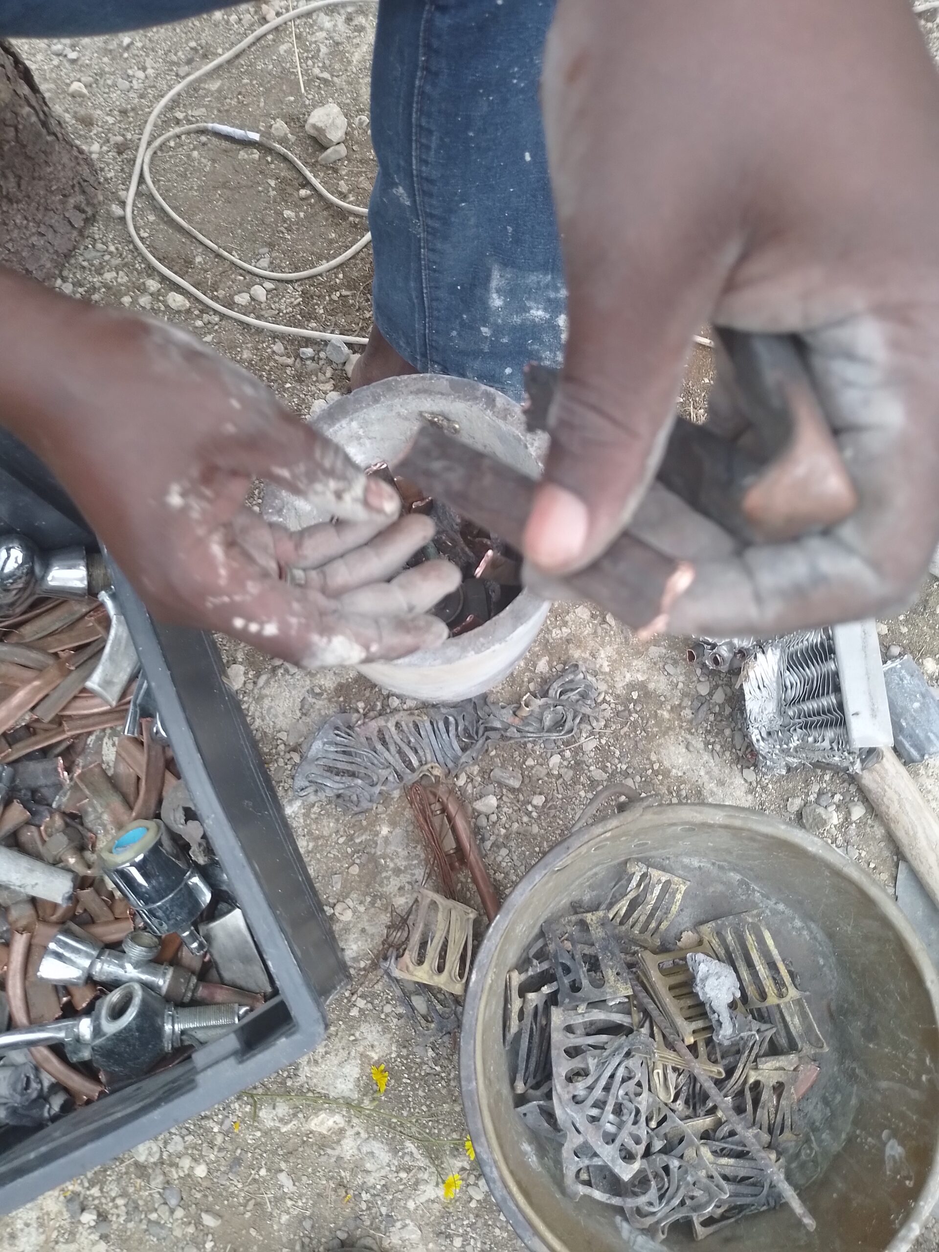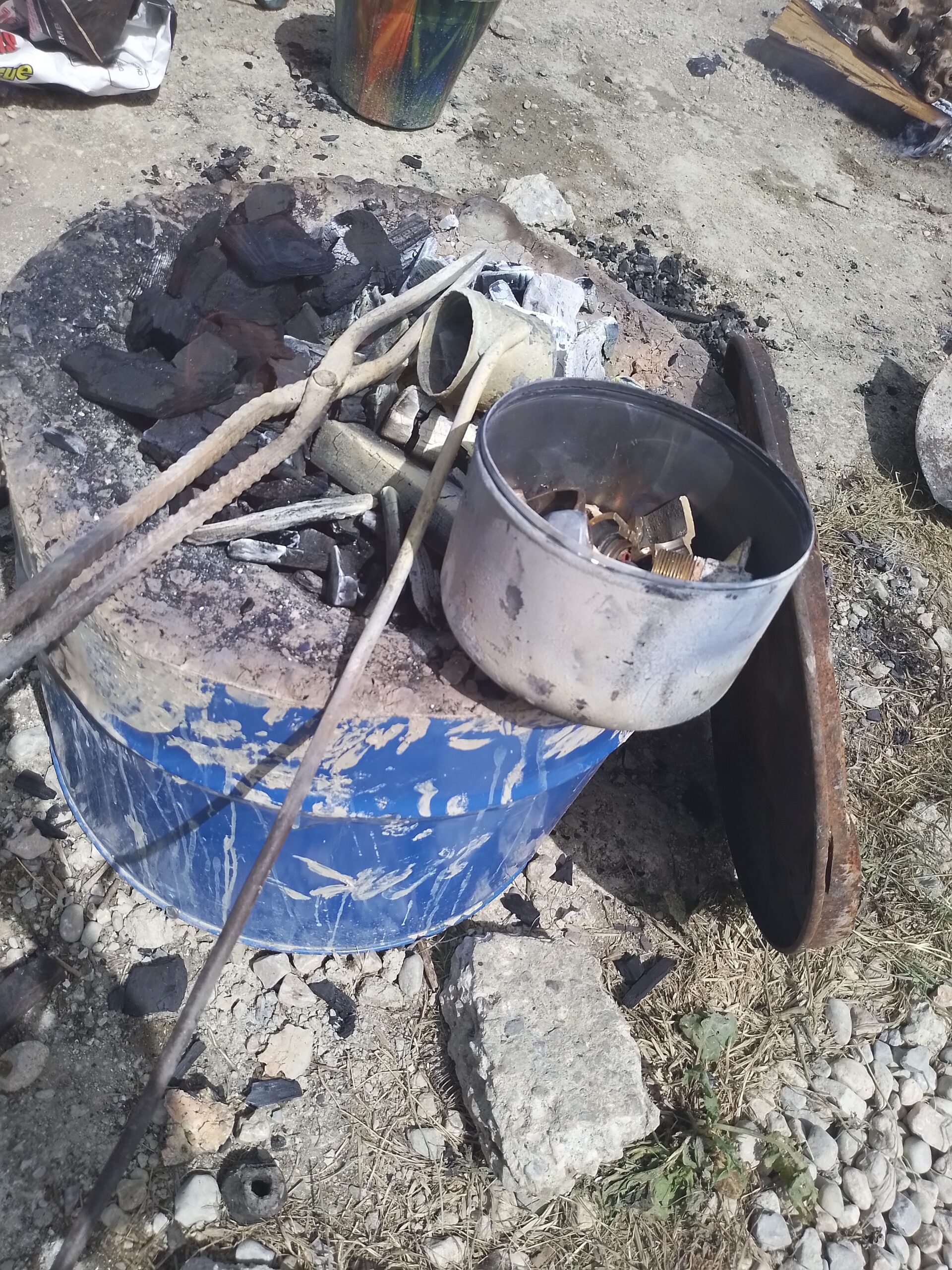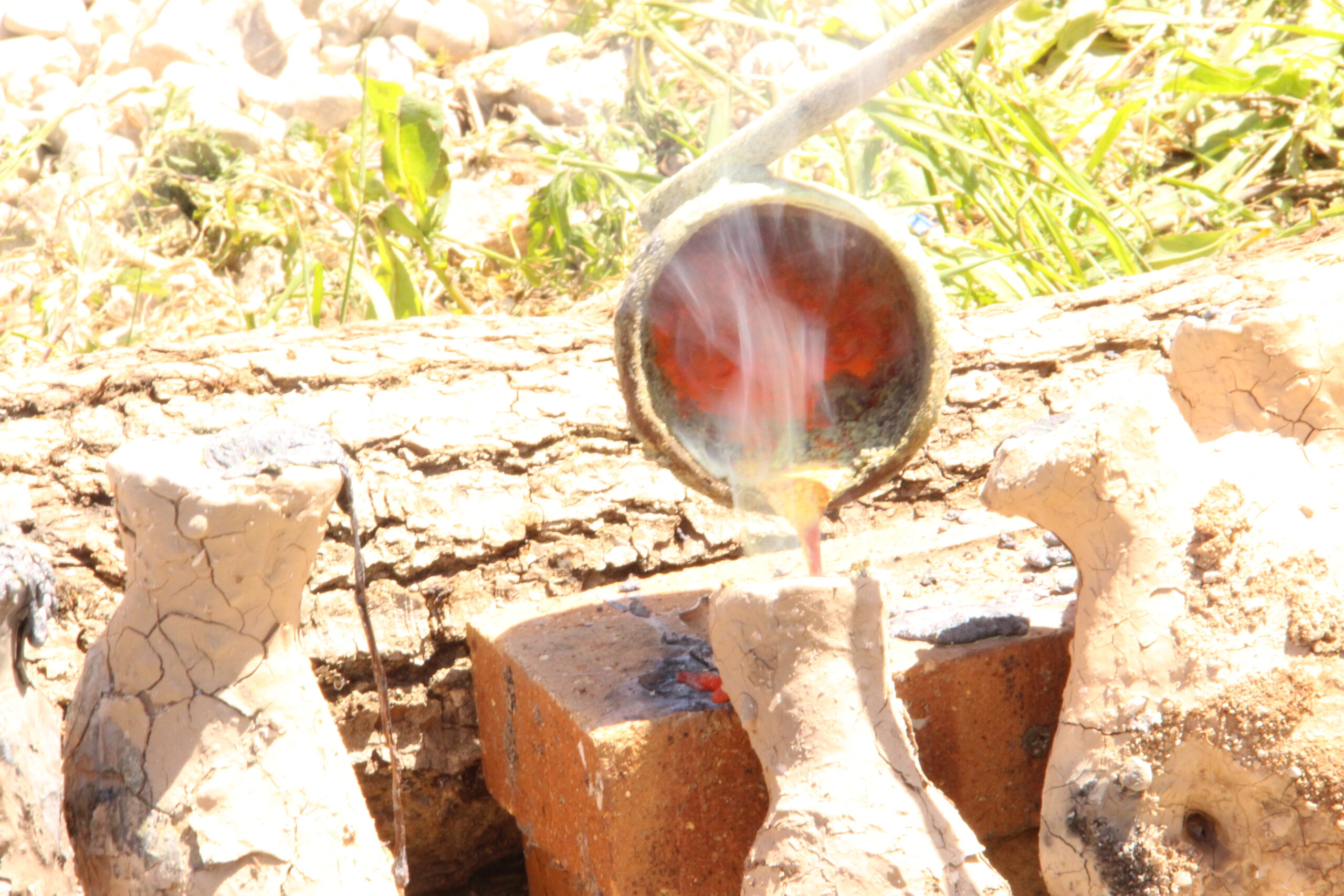 – Fonte du bronze dans un four traditionnel, que Ruphin fabrique, en argile.