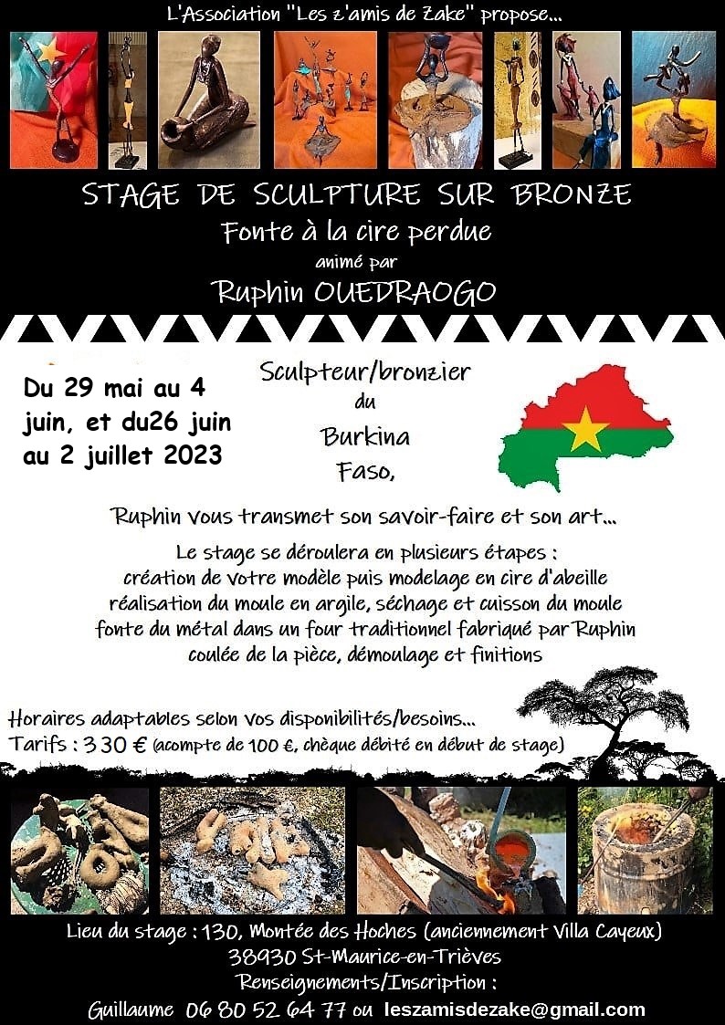 Vous serez accueilli par Ruphin Ouedraogo, artiste bronzier, sculpteur sur bois et granit, originaire du Burkina-Faso.